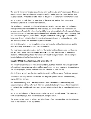 saved (verse 34). Paul and Silas later return to the jailer’s house for a meal and to fellowship.