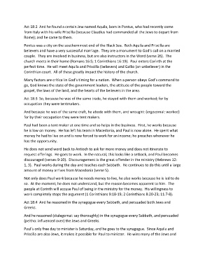 perfect time. He will meet Aquila and Priscilla (believers) and Gallio (an unbeliever) in the