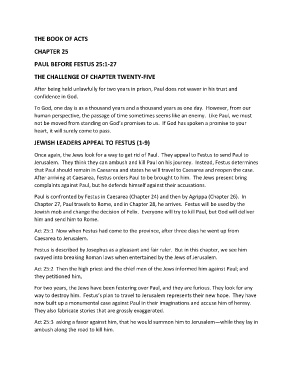 Jerusalem. They think they can ambush and kill Paul on his journey. Instead, Festus determines